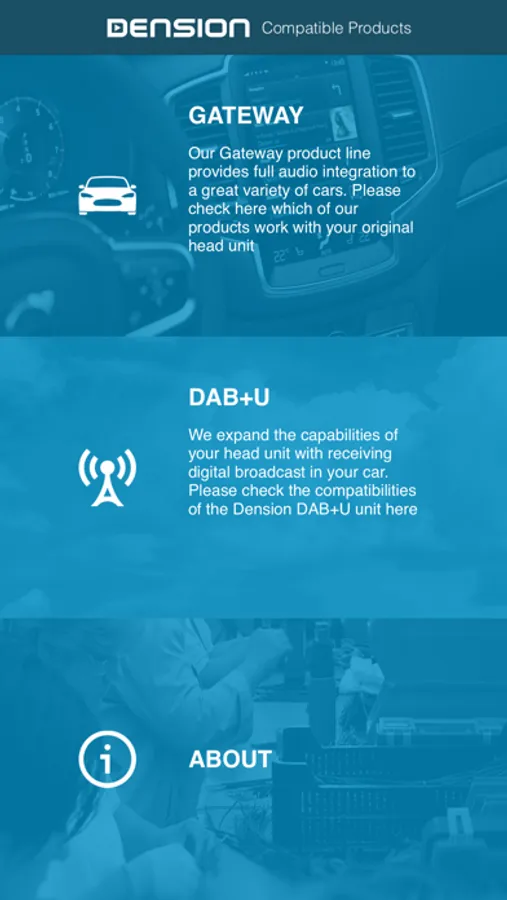 In doubt while searching for the Dension multimedia car adapter? The Dension Compatibility Guide is a selector application where you can check the Dension products’ and your car’s compatibility. The app lets you explore our whole database where you are in charge: choose your car and head unit type, the model year, all details. After setting your preferences, the app lists you the compatible products with their retail package number and even detailed description as well as useful notes that may contain necessary information for compatibility exceptions.