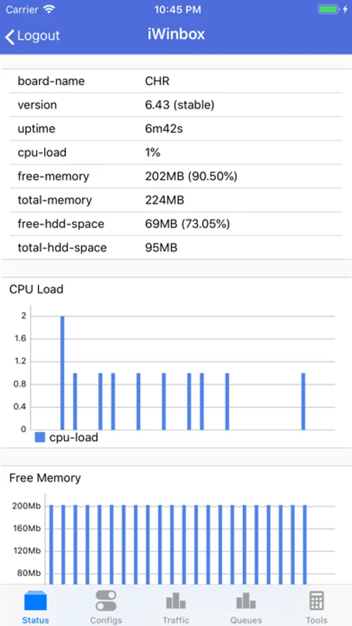 - Live chart for cpu load and free memory. Live ethernet traffic charts.