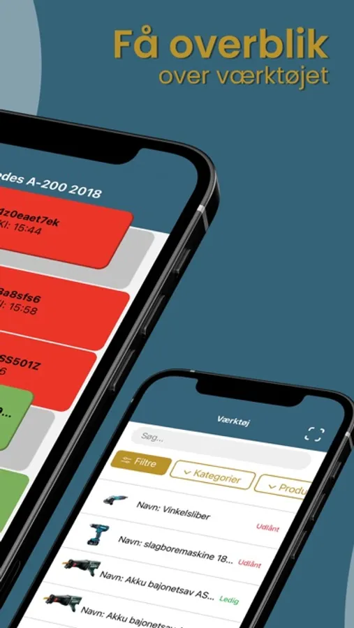 - QR-kode gør det let for medarbejderen at scanne værktøjet og låne, aflevere eller bytte værktøjet.