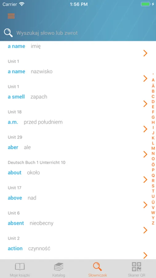 - Our app contains a useful dictionary in which you can find words in your book and jump immediately to the right place in order to practice them!