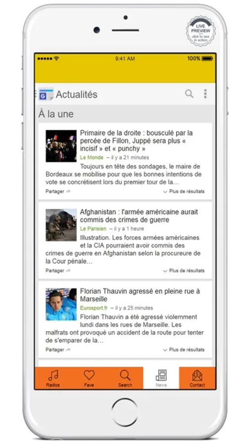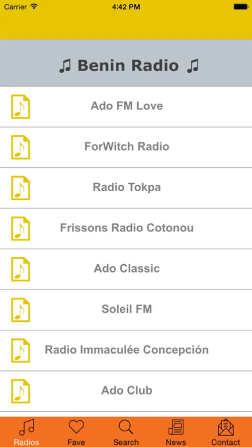 It has favorite button, so that you can bookmark your favorite radio stations. Benin Radio has search option also which can help you to find your desire radio station in single click!
