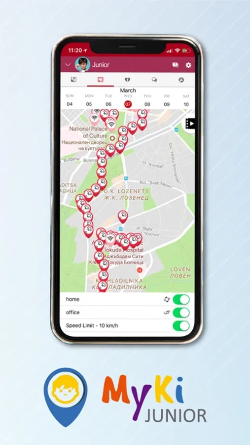 Always know where your child is with MyKi Junior 3G-GPS smartwatch and the MyKi Junior app, sold separately. The app works together with MyKi Junior 3G-GPS smartwatch.