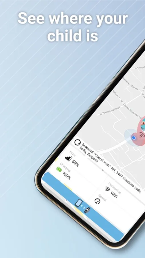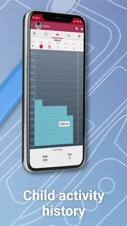 Footprints function: You can set two "Safe Zones," in which you know your child is secure. Also, you can add a speed limit. Thus you will be notified if your child leaves the Safe Zone and/or is moving too fast.
