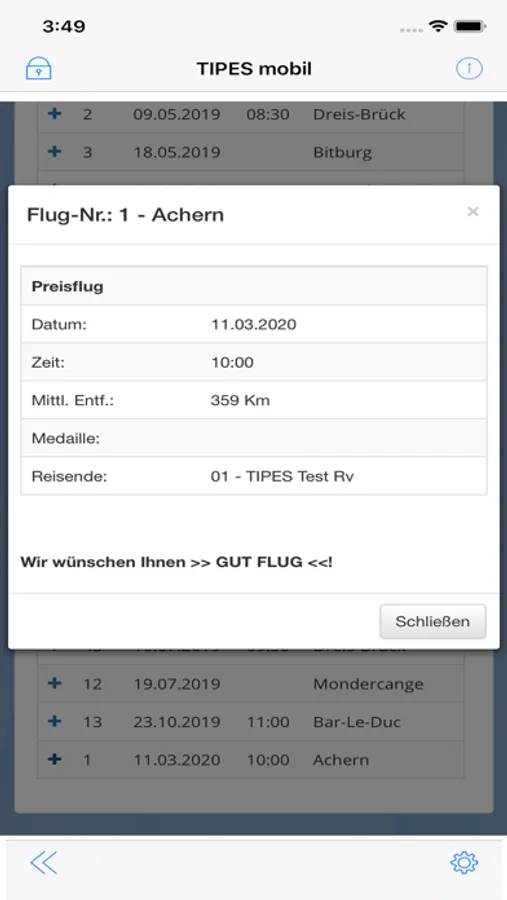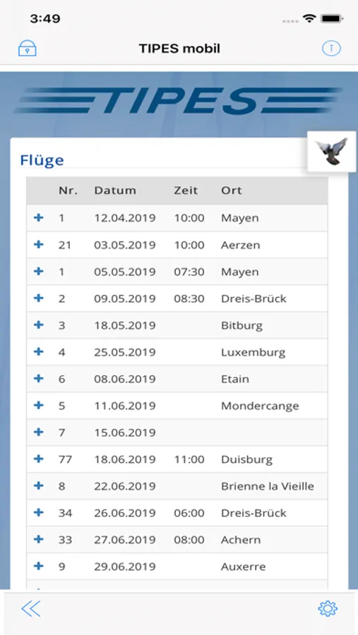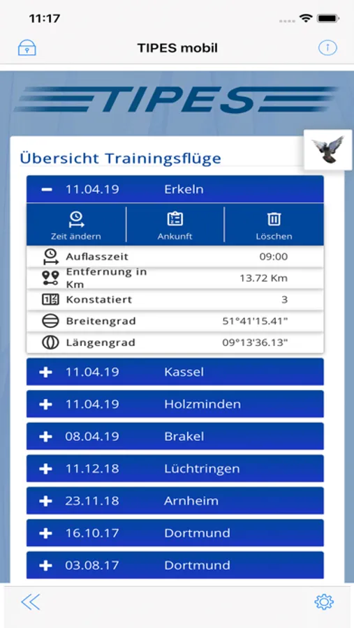 With the TIPES mobile app you can follow the arrival of the pigeons live. Please note that you are logged on http://www.mobil.tipes.de. The login details also apply to this app.