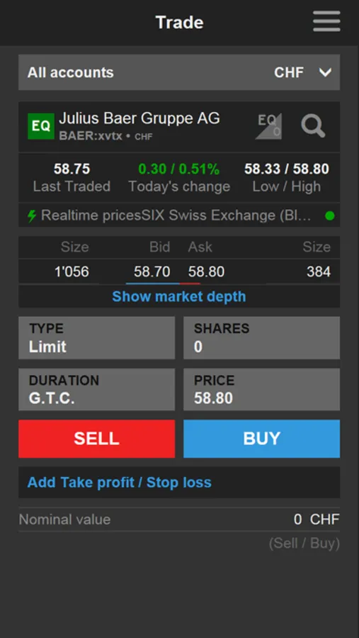 Access to Julius Baer’s online trading platform. With financial instruments across most asset classes, it offers you direct access to global financial markets 24 hours a day. As a client you can