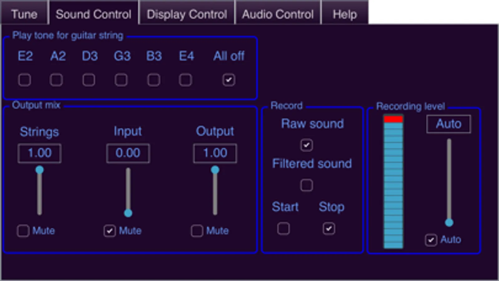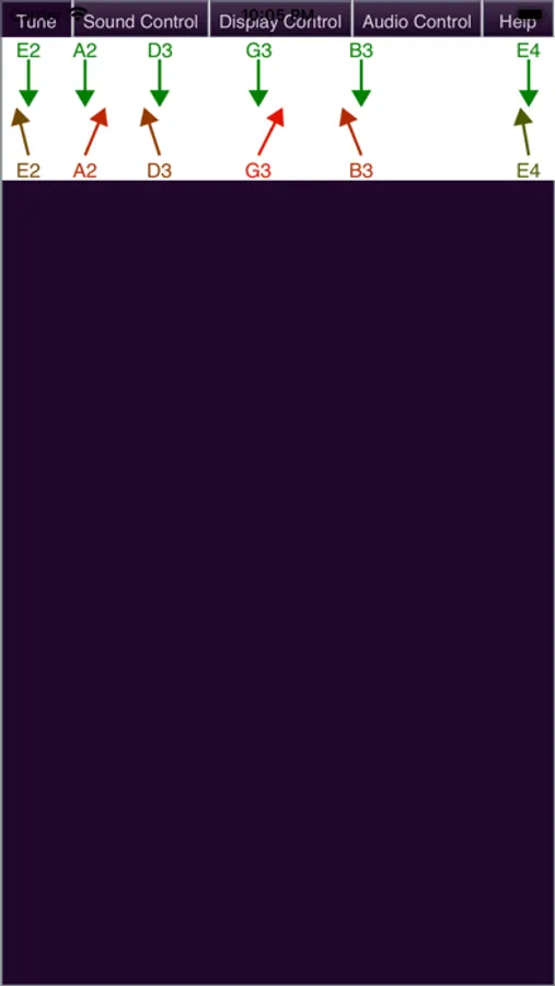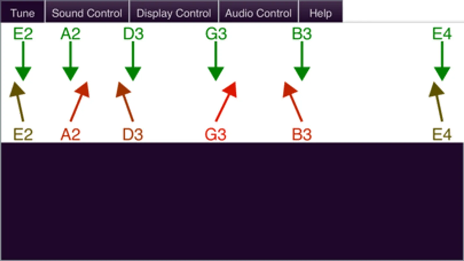 - Displays the actual tone of the guitar strings compared to their correct tone in