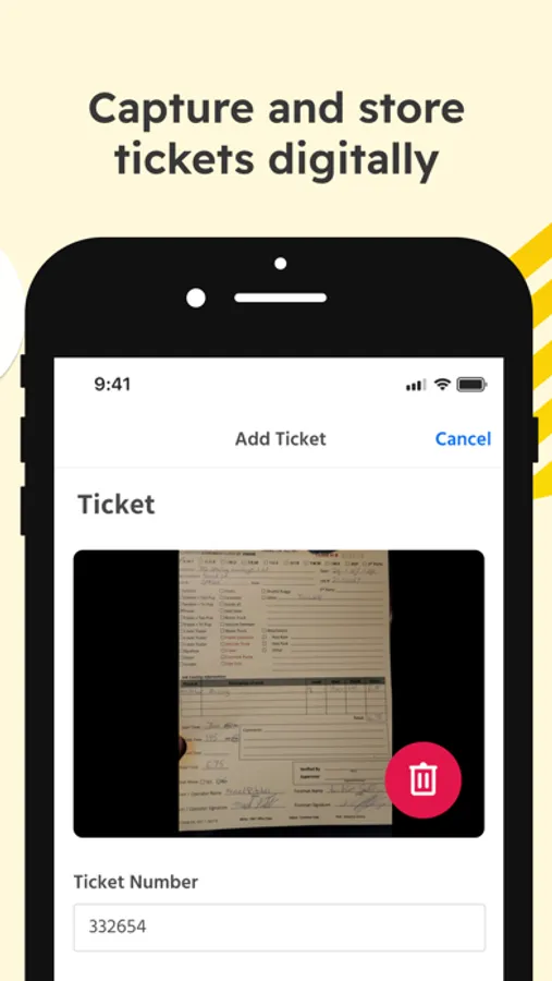 Inventory all your paper tickets digitally by taking a photo and assigning them to the job that they’re associated with.