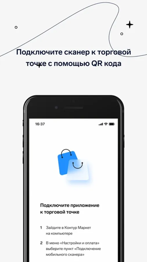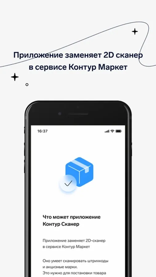 Контур Маркет – сканер заменяет 2D-сканер в сервисе Контур Маркет. Может сканировать штрих-коды и акцизные марки. В сервисе это нужно при постановке товара на баланс и при обработке товарной карточки.