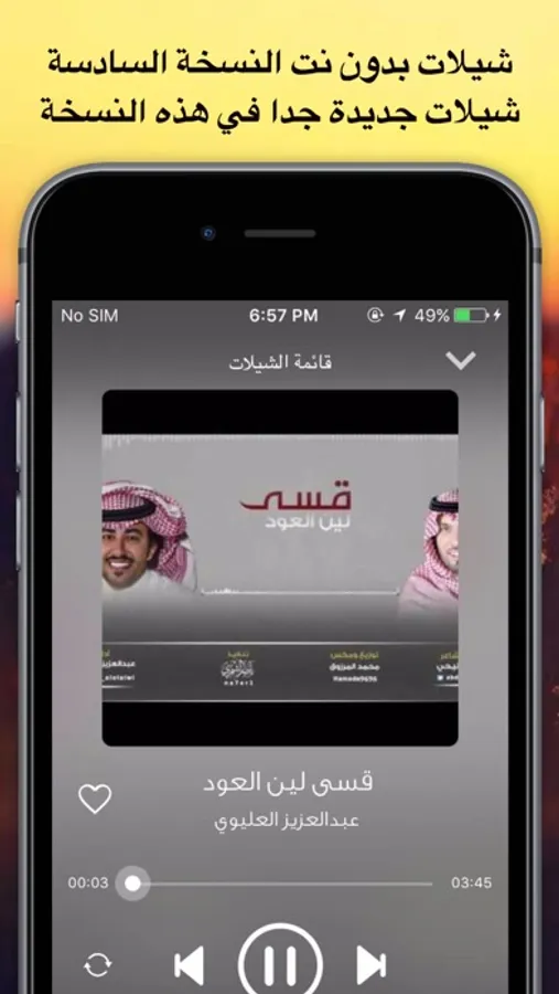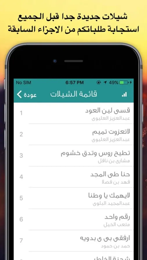 الجزء السادس من سلسلة تطبيقات شيلات مع كلمات مع اجدد الشيلات