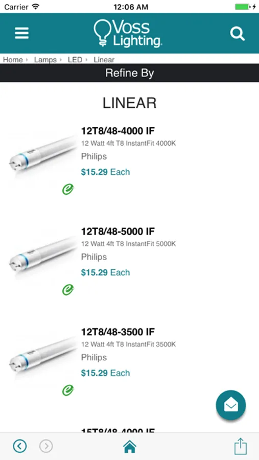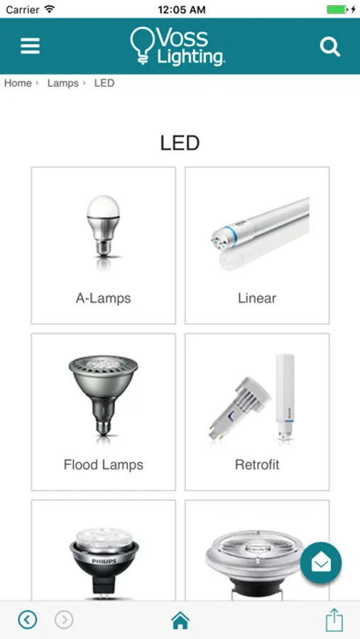 The Voss Lighting app for iPhone and iPad allows you to quickly search for product, check pricing, access your shopping list, see order history, retrieve product spec sheets, chat with a lighting specialist, and order product.