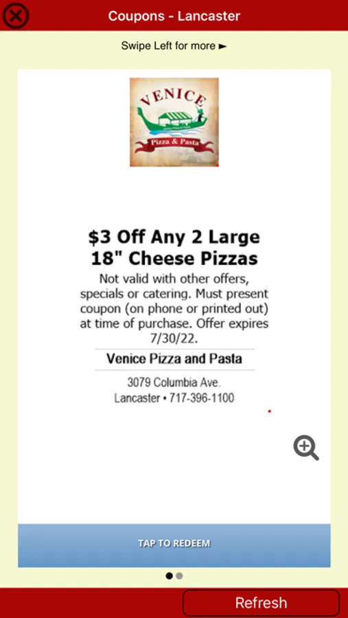 Download the App for delicious deals and meals from Venice Pizza and Pasta in Lancaster, Pennsylvania. This family owned restaurant has it all – easy online ordering for carryout, catering, on-site banquet facilities and now an App with discounts, coupons, loyalty rewards and a menu. Enjoy a beer or glass of wine with a salad, pasta dinner or pizza when dining in with family and friends. Or purchase some beer with your game time carryout party platter. It’s all at your fingertips when you tap the App for: