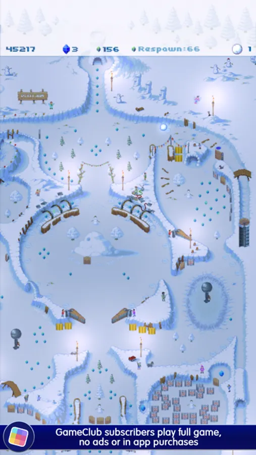If all else fails, don't be afraid to give things a little nudge. Hit the snowmen and try to juggle multiple snowballs at once. Take advantage of the raw scoring power to drive your scores to whole new levels. Head to the mountain in the daytime or try the night course for a different perspective on the mountain. Search high and low for hidden secrets and grab gems wherever you find them in order to accumulate as many points as possible. Snowball is the coolest pinball game around!