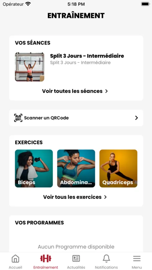 « Que dois-je faire pour mincir ? pour prendre du muscle ? » Retrouvez des dizaines de programmes et de séances personnalisés suivant votre sexe et vos objectifs. Par groupe musculaire : « quels exercices pour galber les fessiers ? pour développer la masse des pectoraux ? » Accédez à une bibliothèque intuitive de + 250 exercices détaillés avec notre planche anatomique interactive.