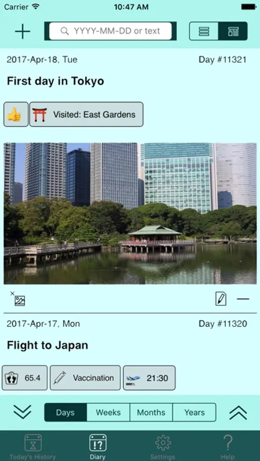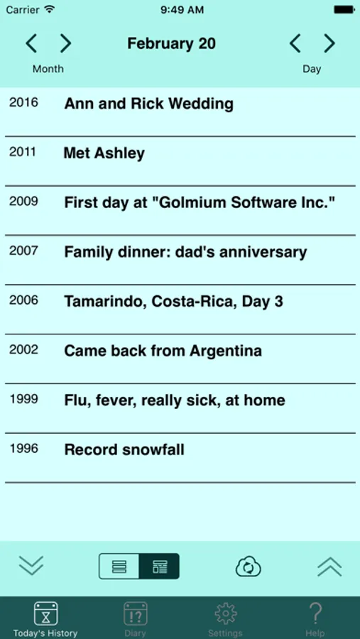 The “Today’s History” is a list of all entries for this day over the years. For example if today is February 1st, the app will show you all events and feelings you entered for this day in the past years.