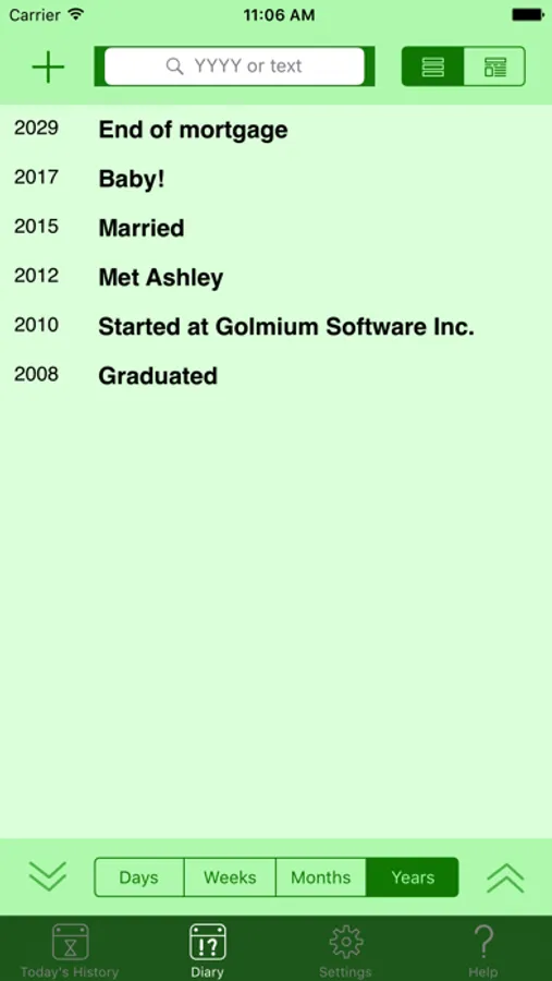 The app allows you to keep a record of events in your life and your feelings for any given day, week, month or year. You can describe the day, week, month or year briefly, and add a more detailed narrative.