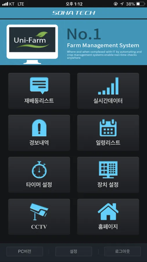 Uni-Farm 작물관리 시스템은 IT와 융복합화하여 최적의 환경 및 자동화 한 작물 관리 시스템으로 언제 어디서든 작업 현장을 실시간으로 모니터 및 제어하여 효율성 및 생산성을 극대화 할 수 있는 시스템입니다.
