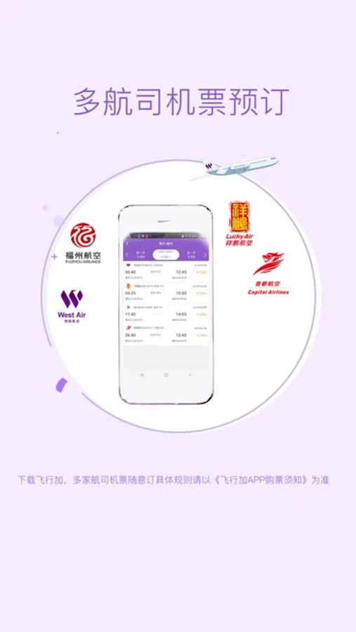 飞行加作为西部航空开发的官方APP购票平台,用户可以通过本应用订购多家航司海量机票、购买增值服务及办理旅途中必要的出行服务等。