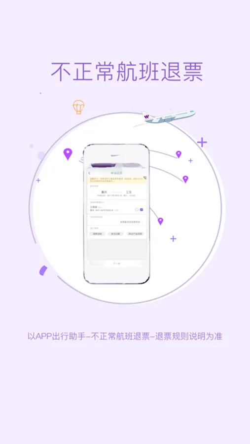 (5)自助服务:航班动态查询、自助退改、不正常航班退改、延误/超售/拒载证明下载等。