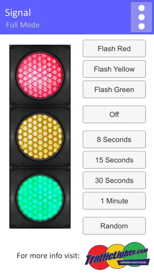 This app allows control of Bluetooth signals purchased from TrafficLights.com. Select individual, flashing, random, or standard traffic light patterns. Edit light name, flash speed, and pin.