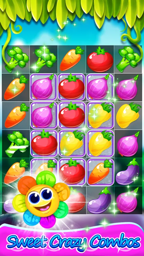 - Drag the Veggies and fruits, match three or more to clear fruit blast and earn points.