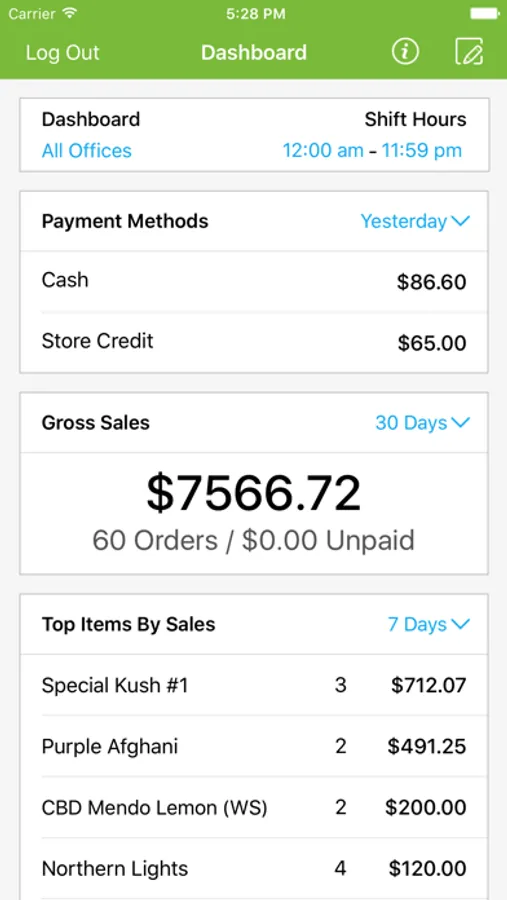 Manage multiple business locations from anywhere using your smartphone or tablet. Our advanced features will give medical marijuana business owners a comprehensive overview of daily operations.