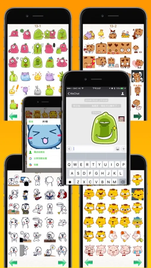 SHARE Stickers to :iMessage, Mail, Twitter, Notes, weibo, Facebook, iCloud, QQ, WhatsApp, Messenger, Dropbox, Airdrop, Instagram, etc.