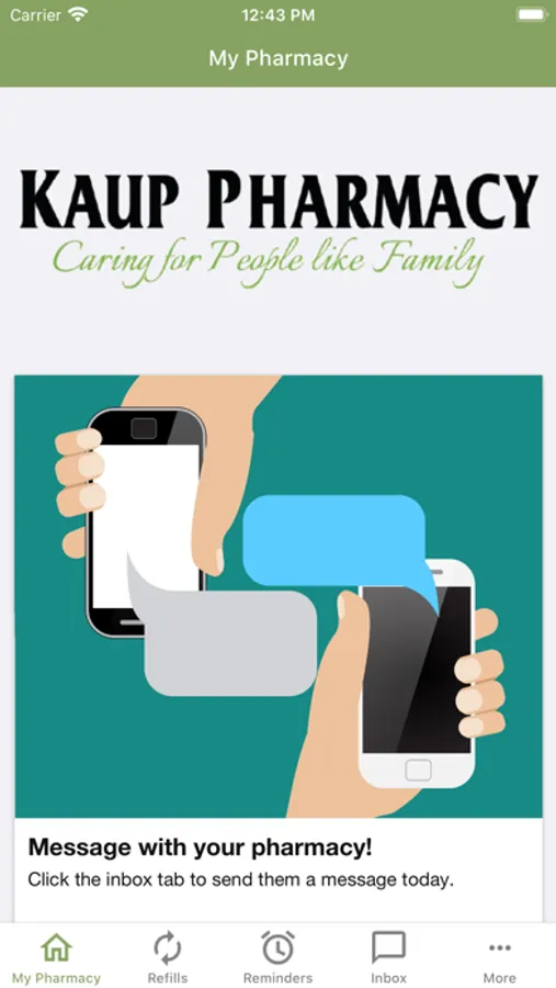 The Kaup Pharmacy app allows you and your family to securely communicate with your local pharmacy. Refill your prescriptions with one click, get refill reminders, get discounts at your local pharmacy, get savings on brand drugs and access Pharmacist written pages that help you understand your condition or medications.