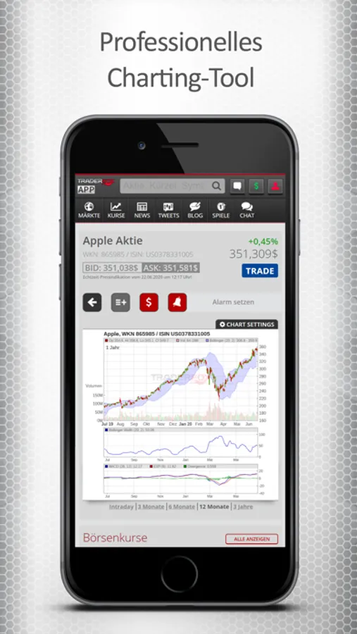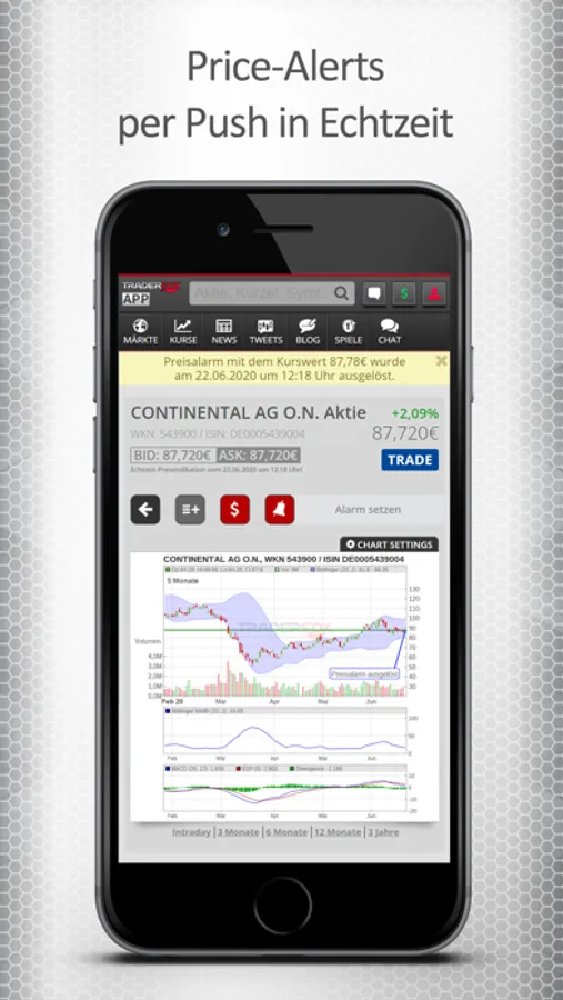 + Charting-Tool ermöglicht umfangreiche Chartanalysen direkt auf dem Smartphone.
