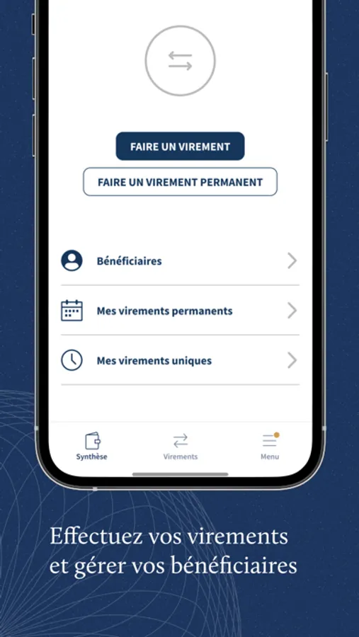 Virement en temps réel ou en différé vers un bénéficiaire enregistré ou vers un nouveau bénéficiaire.