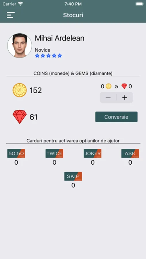 La fiecare întrebare sunt oferite diferite ajutoare care pot fi accesate la nevoie. Accesarea acestora se face contra cost (COINS), sau folosind Carduri Cognitio, după cum urmează: