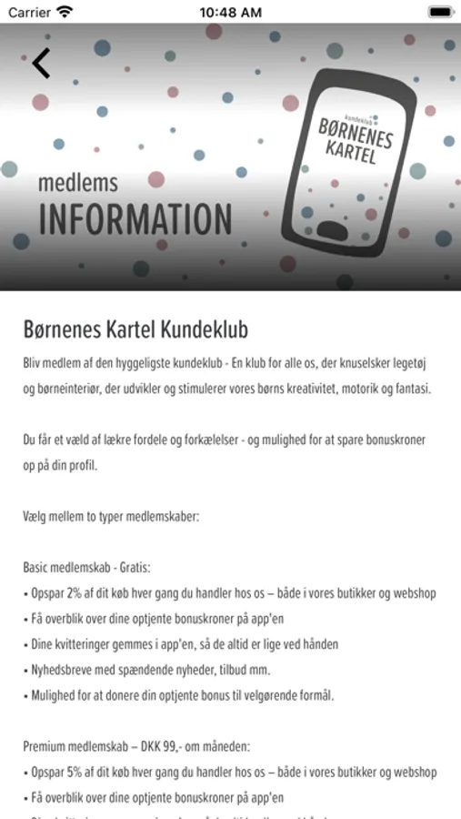 Download vores app og bliv medlem af Børnenes Kartel Kundeklub. Klubben er for alle os, der elsker legetøj og børneinteriør, der udvikler og stimulerer barnets kreativitet, motorik og fantasi. Som medlem får du et væld af lækre fordele hver eneste måned. Du kan vælge mellem Basic og Premium medlemskab