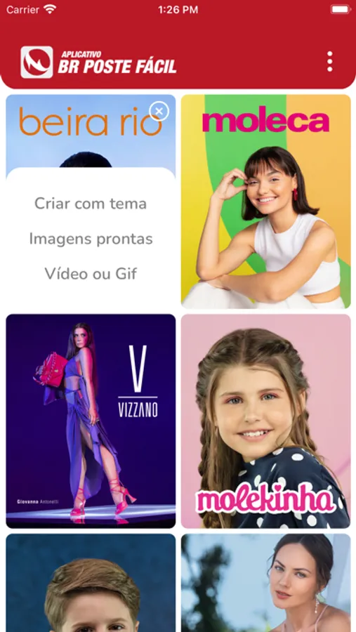With BR Poste Fácil your social networks are always up to date with the novelties by the brands Beira Rio Conforto, Moleca, Vizzano, Molekinha, Molekinho, Modare Ultraconforto and Actvitta.