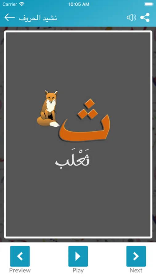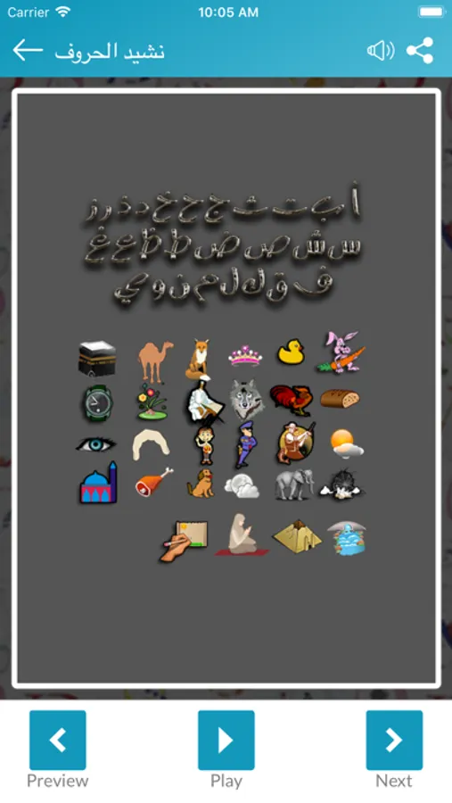 أفضل تطبيق يستخدم الطريقة الأمثل لتعليم الأطفال حروف الهجاء ! مع رسومات كرتونية صوتية و تفاعلية " نشيد الحروف " تحبب الطفل في تعلم الحروف ولغة القرأن الكريم اللغة العربية