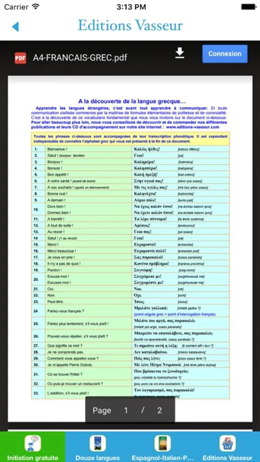 Vous voulez progresser en anglais, espagnol ou allemand ? Vous voulez vous initier gratuitement à treize langues étrangères allant de l'italien au chinois, du russe au japonais en passant par l'arabe, le portugais, le grec, le turc, le néerlandais et le polonais ? Alors, PARLISSIMO est l'application que vous cherchiez. PARLISSIMO vous propose en outre un libre accès aux fichiers sonores de plusieurs livres des Editions Jean-Pierre Vasseur (www.editions-vasseur.com ) qui se consacrent exclusivement à l'apprentissage des langues étrangères.