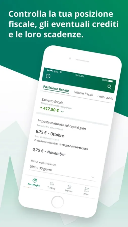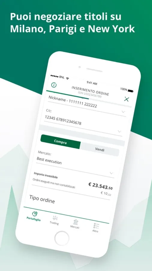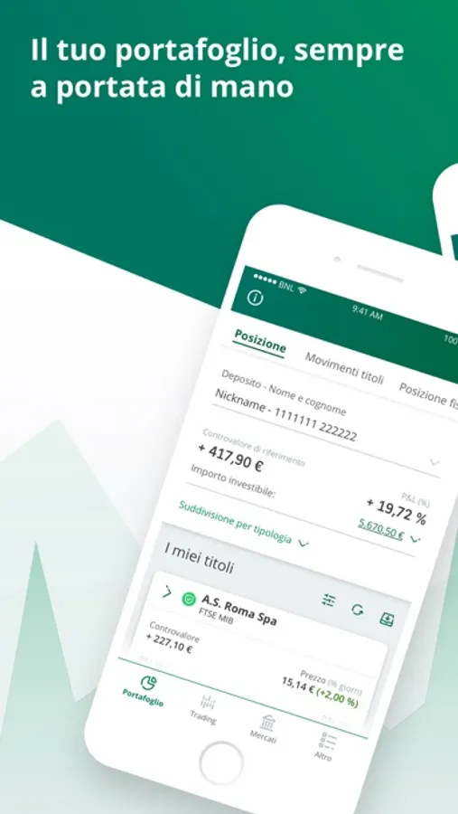 BNL presenta la sua prima app dedicata al trading online: con Trading BNL puoi operare in mobilità sui mercati finanziari, ma anche consultare la posizione dei tuoi portafogli ovunque e in qualsiasi momento.
