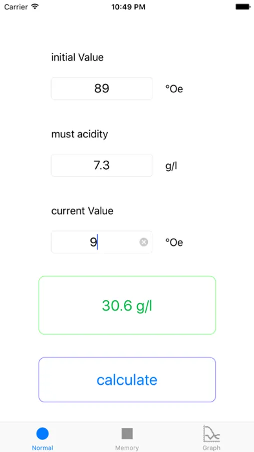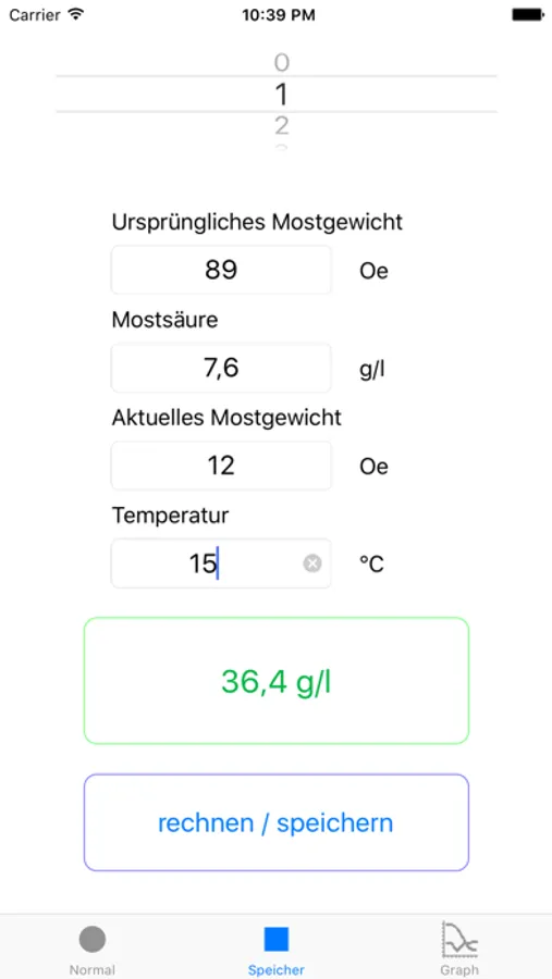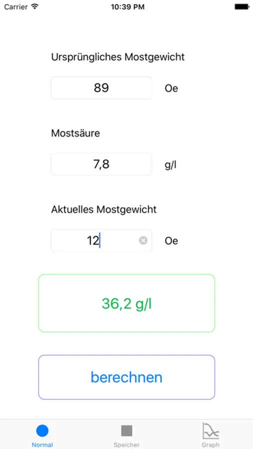 The app is designed to calculate based on measuring the specific density by areometer with Oechsle- scale.