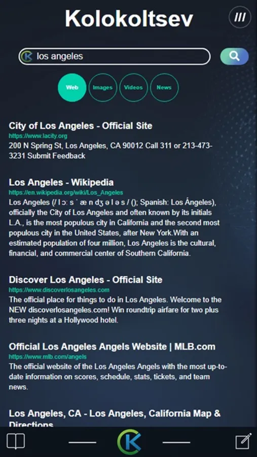 Kolokoltsev Search this application to search for websites, articles, photos and videos, as well as watching the news, and open websites in build-in browser, and quick access to favorite sites search query.