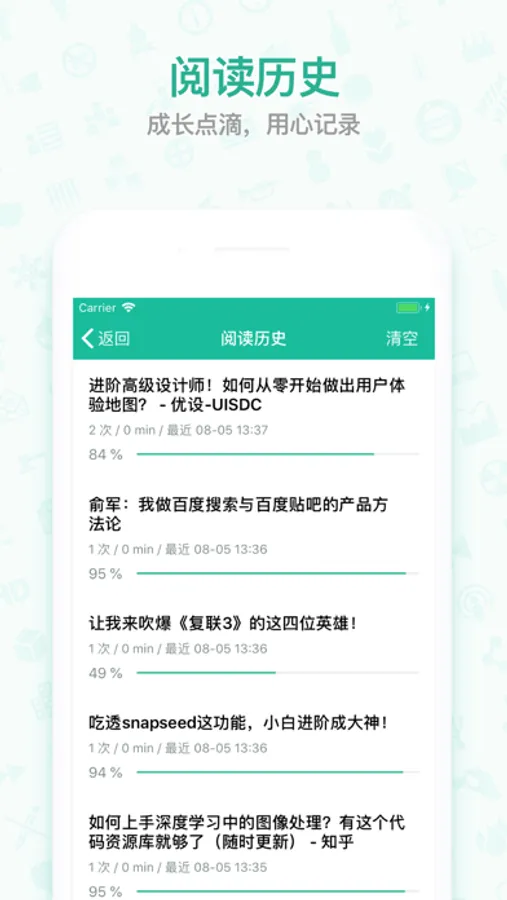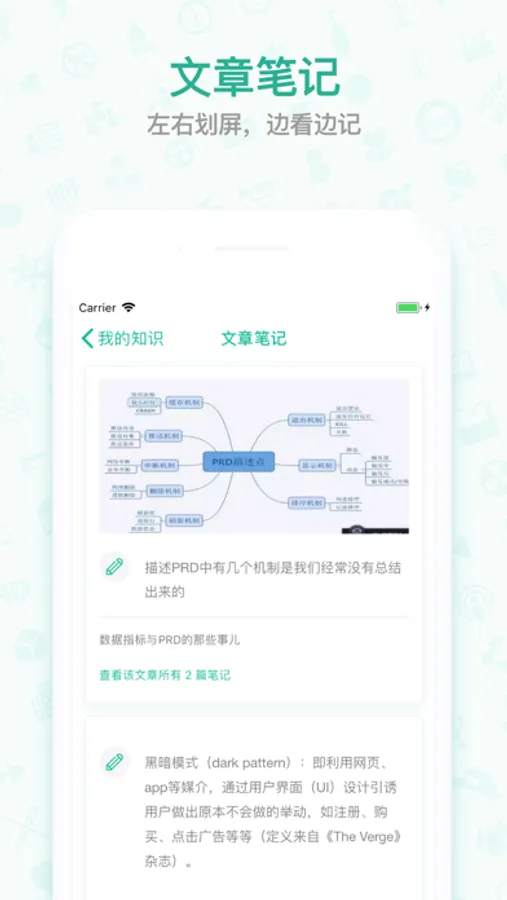 Through the application of the first screen, regular notification and other forms for you to review your collection of articles, organized notes and so on, the precipitated knowledge can be effectively utilized.