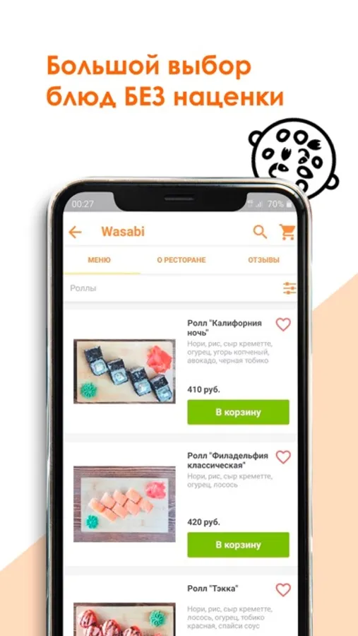 - Приложение БЕСПЛАТНОЕ и все цены полностью зеркальны с ценами ресторанов и постоянно с ними синхронизируются! Никаких наценок и переплат!
