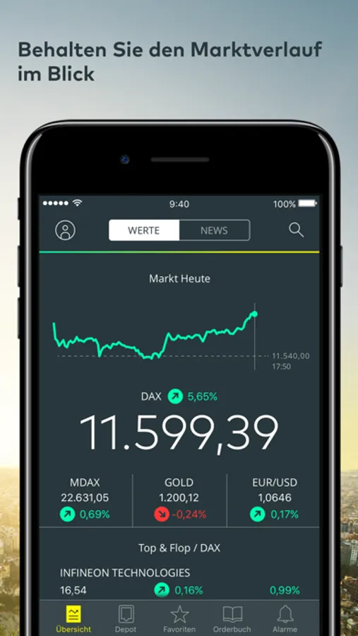 - Alles auf einen Blick: Depot, Orderbuch, DAX-Tops & Flops, Favoriten und Markt-News