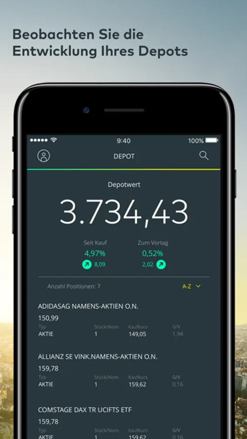 - Schnelle Einzelwertansicht mit direkter Kauf-/Verkaufsmöglichkeit aus dem Depot heraus