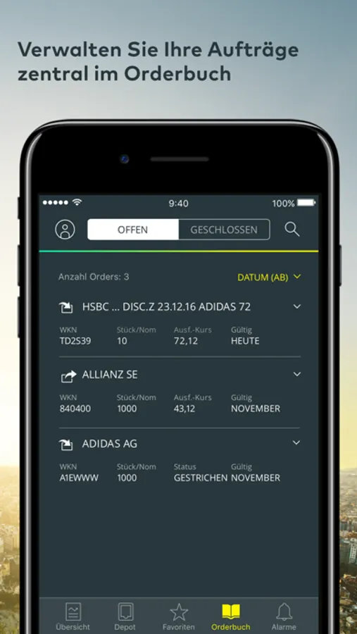 - Jederzeit Aktien, Zertifikate und andere Wertpapiere an der Börse, außerbörslich oder im LiveTrading handeln