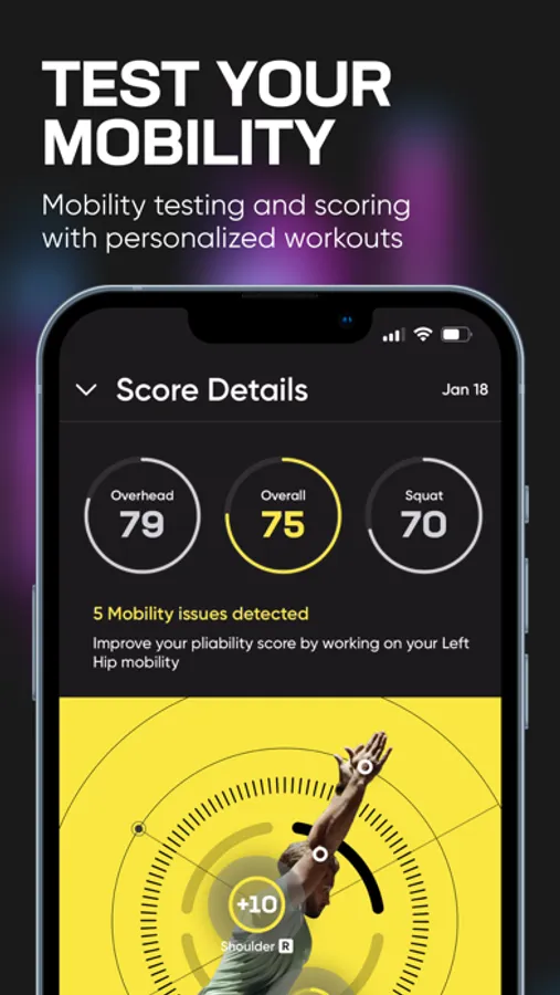 Our Mobility test leverages iPhone and iPad technology to precisely measure your body's active range of motion. You’ll receive a detailed report with your specific mobility issues, along with recommended routines to improve.