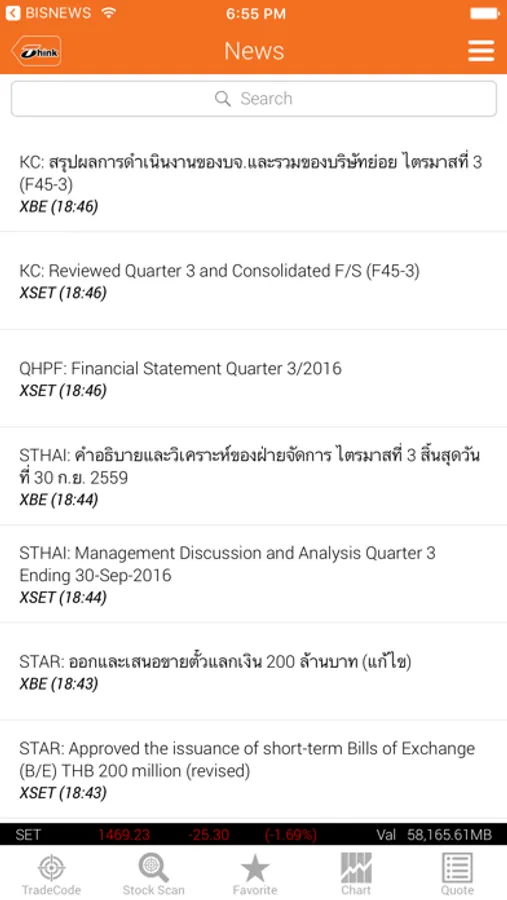 "Thanachart TradeCode" is a new technical investment tool from Thanachart Securities. It is built into the Thanachart Think mobile application. TradeCode presents technical stock recommendations with fundamentals-based value scores and real-time price movement data. It is user friendly and designed for both stock traders (who can ignore fundamental value scores) and fundamental investors who look for the right timing to invest in stocks. TradeCode offers a new experience of investment for simpler, faster and smarter investment decision making.