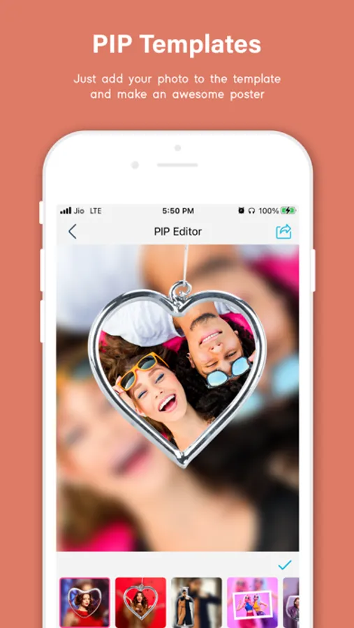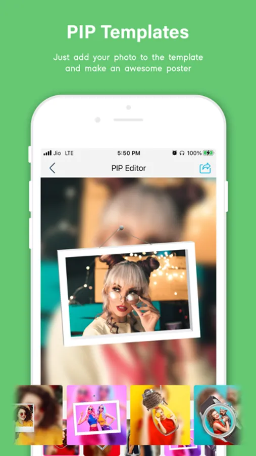PIP Photo Editor sets your Photo in another Photo frame with some creative frames.Easiliy making