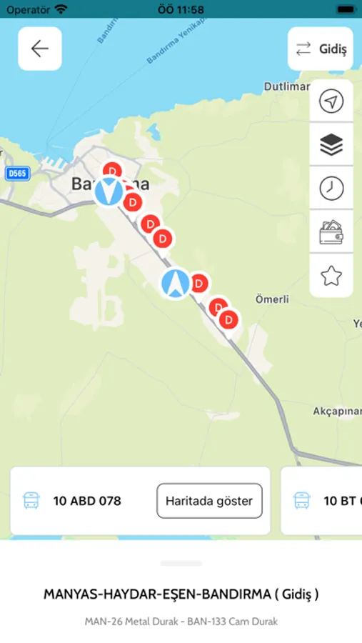 Toplu ulaşım araç bilgileri, durak bilgileri, sefer bilgileri görüntülenir, Şehir toplu taşıma kartlarına bakiye yüklenebilir ve görüntülenebilir.