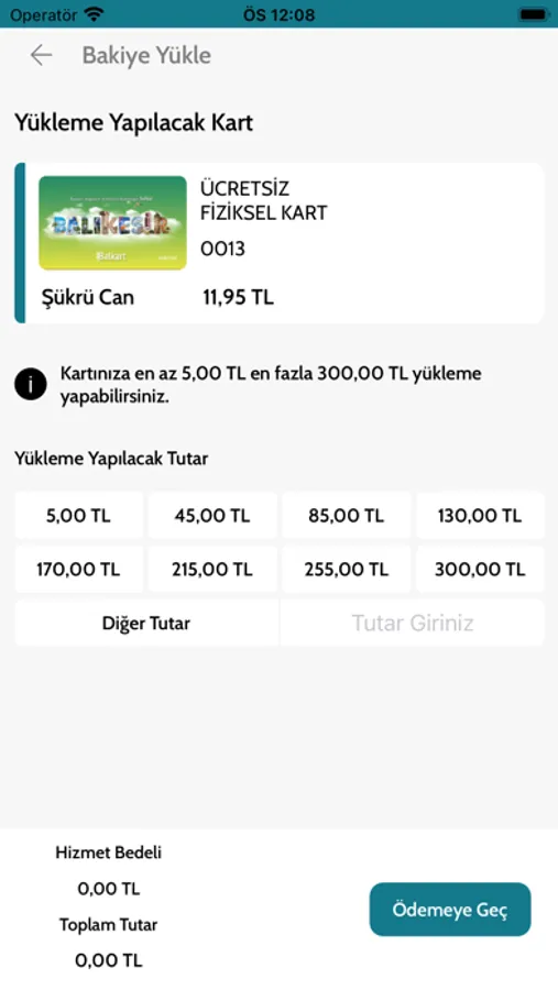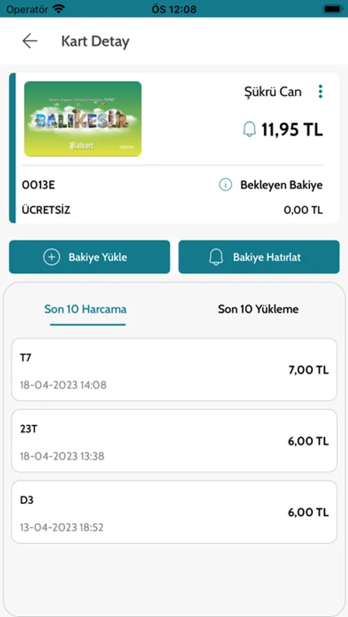 Uygulama Fonksiyonları : Sanal Kart QR Geçiş, Otobüsüm Nerede, Bakiye Sorgulama, Bakiye Kontrol, Ücret Tarifesi, Hat Hareket Saatleri, Yetkili Bayi ve Kart Merkezleri, Bakiye Yükleme, İletişim, Favoriler, Şikayetim Var