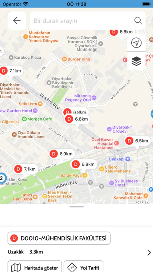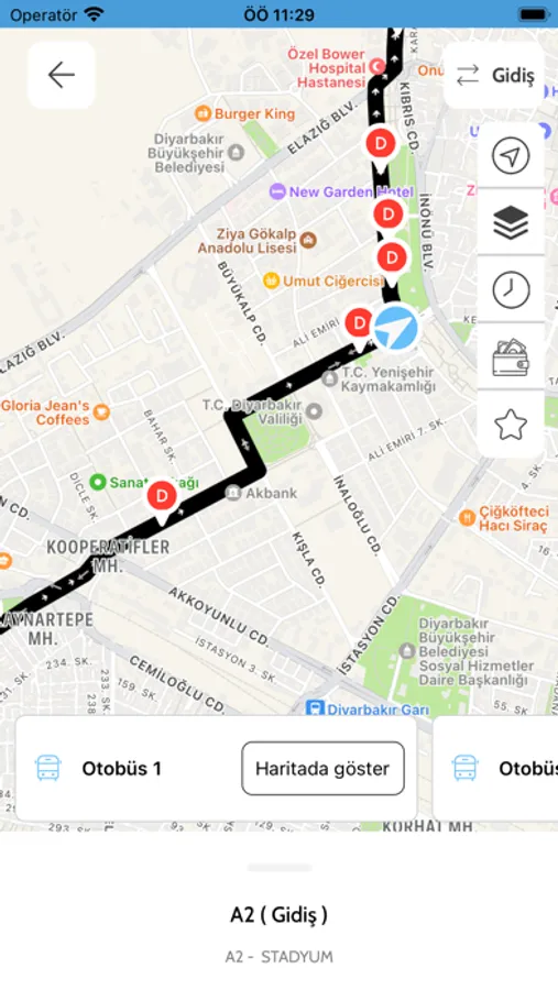Toplu ulaşım araç bilgileri, durak bilgileri, sefer bilgileri görüntülenir, Şehir toplu taşıma kartlarına bakiye yüklenebilir ve görüntülenebilir.