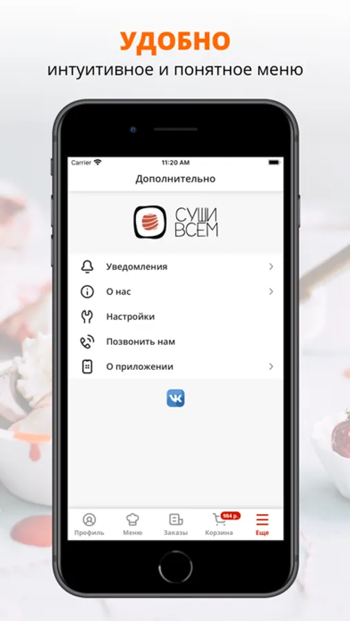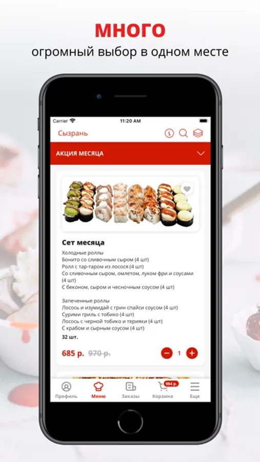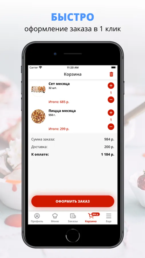 посмотреть меню и совершить онлайн-заказ,