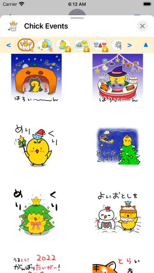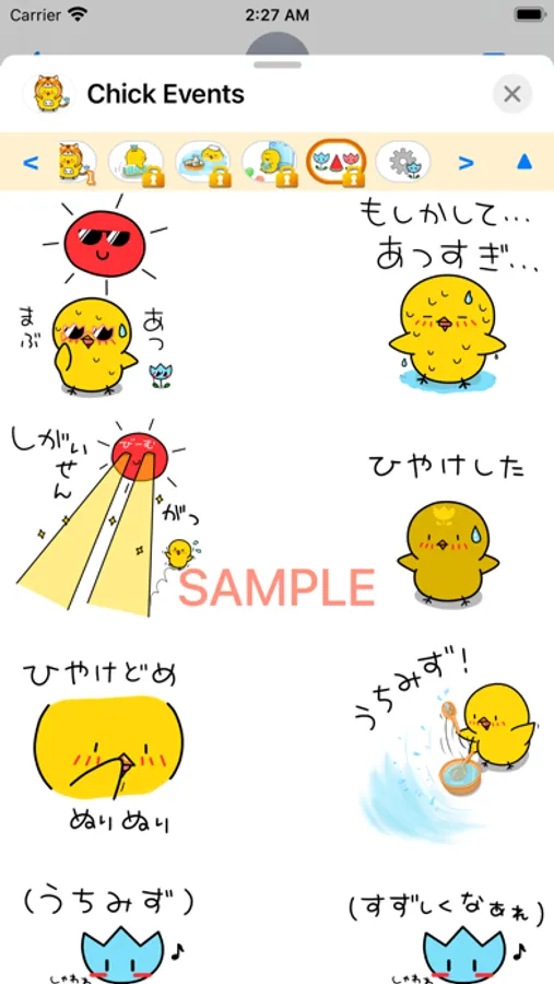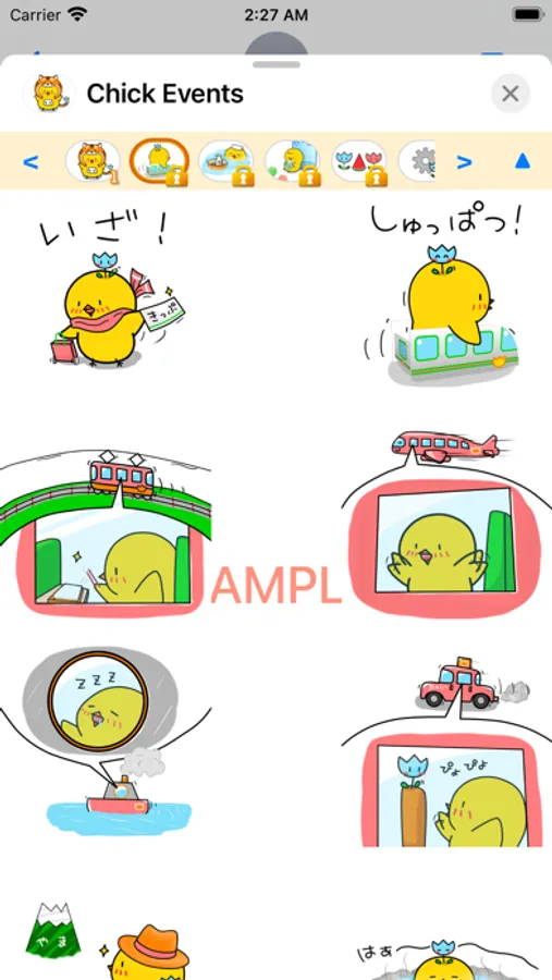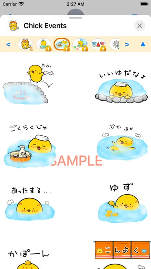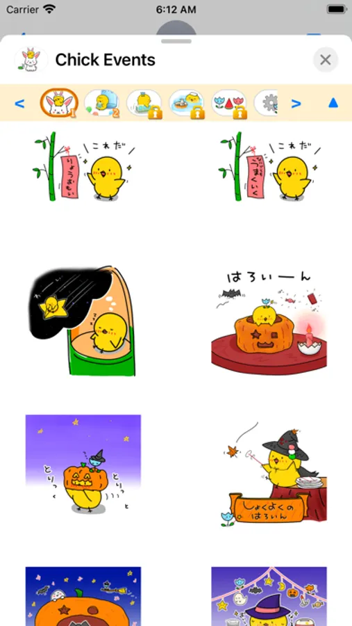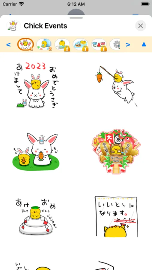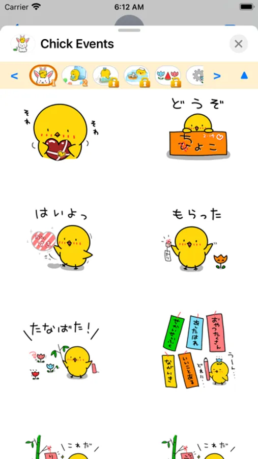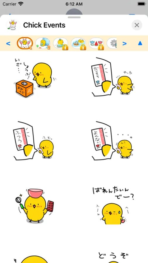 Chick express their feelings in Japanese hiragana. This sticker is for Events.